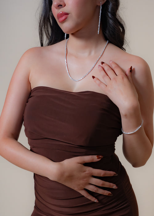 You can purchase a chain, bracelet, and earrings together at a bundled price.